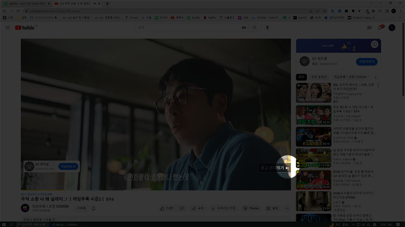 아니면 편안하게 앉아서 영상을 감상하는데 광고가 중간에 뜨면 몸을 살짝 일으켜 광고 건너뛰기 버튼을 누르는 것이 너무나도 귀찮습니다.